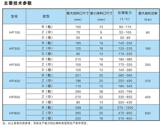 (1)液壓圓錐破的大給礦尺寸≤85%給礦口尺寸,否則會導致圓錐破產(chǎn)量的降低和零件的損壞。